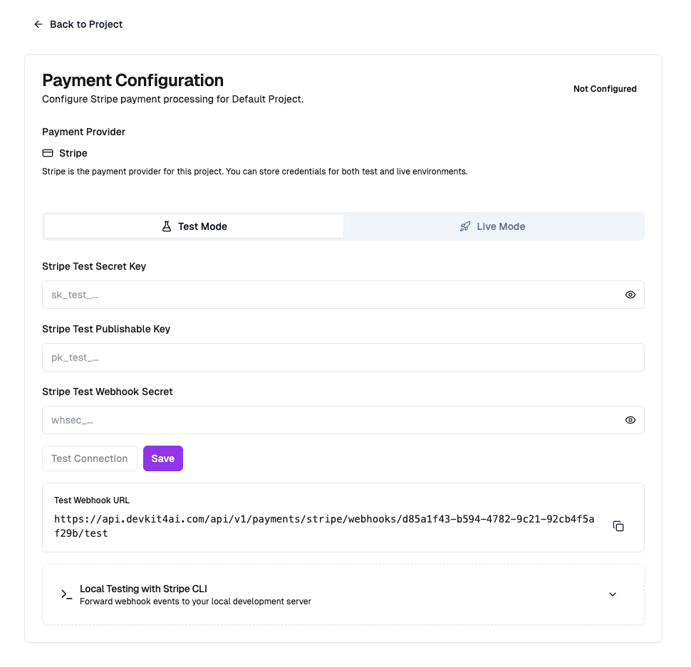 Visit docs.devkit4ai.com/tutorials/integrations/stripe-payments for full technical documentation.